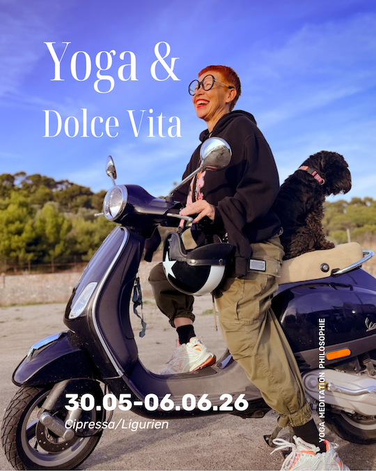 Das Süße und Leichte im Leben genießen, ohne das Bittere und Schwere zu negieren. Lebendigkeit mit all seinen Aspekten. Der atemberaubende Blick in die ferne Weite, der Geruch nach Meer, der Wind und das Salz auf der Haut. Der Geschmack von Espresso und Pasta, die sanften Geräusche des Lebens im Dorf. Genuss mit allen Sinnen. Die Sonnentrasse Italiens, wie Cipressa genannt wird, lädt ein, um aus reiner Freude und Freiheit, aus der Fülle der Möglichkeiten zu schöpfen. Wir kreieren in diesen Tagen Neues, sowohl auf körperlicher als auch auf geistiger Ebene, müssen uns nicht im psychologischen Sinne der Willenskraft entscheiden, es lädt vielmehr das sowohl als auch ein, um in Momenten des scheinbaren Widerspruches aufzugehen, an jenem Ort in uns, der alles inkludiert und uns gleichzeitig als Quelle für jegliche Form von Kreativität dient. Auf der Matte erwartet Dich eine Mischung aus sanftem Yoga, Meditation und Philosophie. Neben der Matte jede Menge Dolce Vita.
